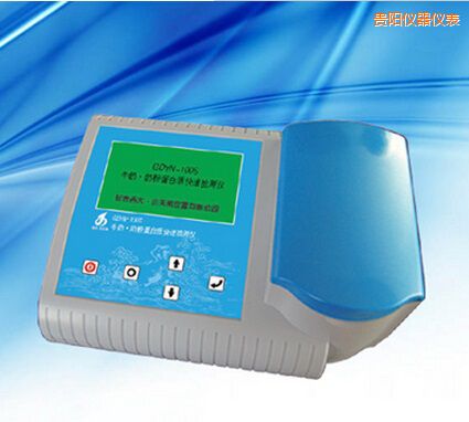 應(yīng)用領(lǐng)域 適用于牛奶、奶粉、牛初乳及牛初乳粉中蛋白質(zhì)的快速定量測定。 儀器特點(diǎn) ● 檢測速度:包括樣品前處理在內(nèi),,檢測每個(gè)樣品只需5~10分鐘。 ● 抗干擾能力:該儀器測定樣品中蛋白質(zhì)氮,,真實(shí)反應(yīng)樣品中蛋白質(zhì)的含量,,不受三聚氰胺、尿素、硝酸銨及甘氨酸等非蛋白氮的干擾。 ● 操作方式:被測樣品采用流通引入方式,,取代傳統(tǒng)的樣品池,,方便用戶操作、清洗及維護(hù);克服了傳統(tǒng)凱氏定氮法樣品前處理系統(tǒng)繁瑣,,操作步驟繁雜等缺點(diǎn),,避免了傳統(tǒng)方法需向樣品中加入濃硫酸,,高溫消化等危險(xiǎn)性步驟。 ● 數(shù)據(jù)存儲(chǔ):數(shù)據(jù)存儲(chǔ)量大,,存儲(chǔ)容量大于2000條檢測數(shù)據(jù)。 ● 單機(jī)軟件:單機(jī)具有數(shù)據(jù)處理、結(jié)果統(tǒng)計(jì)等功能。 ● 數(shù)據(jù)接口:外設(shè)USB、RS232接口。 ● 耗材配件:提供完備的專用前處理設(shè)備和耗材,,一站式服務(wù)。 技術(shù)指標(biāo) ● 光源: 超高亮發(fā)光二極管 ● 測定下限: 0.50%(牛奶) 5.00%(奶粉) ● 測定范圍: 0.50 %~4.00%(牛奶) 5.00%~40.00%(奶粉) 4.00%~10.00% (牛初乳) 40.00%~80.00%(牛初乳粉) ● 精 密 度: 2 % ● 電源: AC 220V±22V,50Hz±1 Hz ● 尺寸:275x210x130 mm ● 重量:1.7 kg 儀器配置 * 樣品前處理設(shè)備1套 * 微機(jī)接口和數(shù)據(jù)處理軟件1套 * 外置打印機(jī) * 試劑1套(50次)