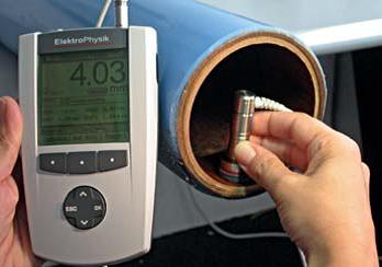 重現(xiàn)性 讀數(shù)的可靠性主要取決于讀數(shù)的重現(xiàn)性。電磁干擾是最普遍的導(dǎo)致誤差的根源,所以保護測量系統(tǒng)和探頭電纜免受這些干擾非常重要。 跟傳統(tǒng)技術(shù)不同,SIDSP®在探頭內(nèi)部產(chǎn)生和控制激發(fā)信號;貍鞯男盘栔苯舆M行數(shù)字轉(zhuǎn)換和處理從而提供測量厚度值。厚度值通過探頭電纜數(shù)字化傳輸?shù)斤@示裝置,也就是說:在這種情況下模擬測量系統(tǒng)的信號傳輸過程中沒有更多干擾。即使您的測量工件需要特別長的電纜線也沒問題,加長的電纜線同樣具有極強的抗干擾能力。 EPK 的SIDSP®探頭具有極高的重現(xiàn)性。將探頭放在同一測量點測量幾次,qnix涂層測厚儀,每次您都可以得到基本一樣的結(jié)果,再次證明了SIDSP®探頭的優(yōu)秀性能。