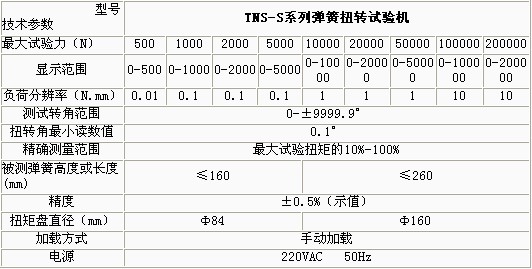 產(chǎn)品概述: TNS-SL系列彈簧扭轉(zhuǎn)試驗機主要用于各種扭簧、蝸卷彈簧、彈簧元件和摩擦機構(gòu)的扭轉(zhuǎn)角、扭轉(zhuǎn)力矩的測試。 功能特點: 該系列彈簧試驗機的扭轉(zhuǎn)扭矩、角度為數(shù)字顯示、角度測量采用角位移傳感器(光電編碼器)、可以對扭矩傳感器的角位移量作自動修正、該扭轉(zhuǎn)試驗機還具 有峰值保持、過載保護、剛度計算、結(jié)果打印、數(shù)據(jù)查詢等功能、手動加荷,彈簧 疲勞試驗機,左右旋隨意選擇、結(jié)構(gòu)緊湊,彈簧拉壓試驗機價格,操作簡單,青島彈簧試驗機廠家,檢測速度快、測量時試件水平放在兩扭矩盤之 間 技術(shù)參數(shù):