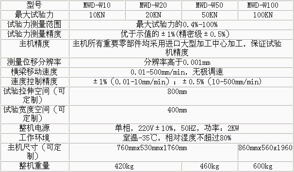 MWD-W系列微機控制電子式人造板試驗機技術(shù)參數(shù):