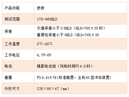 基本配置:主機(jī)(含打印機(jī))1臺(tái)、D型沖擊裝置1支、小支撐環(huán)1只、尼龍刷1只、高值標(biāo)準(zhǔn)里氏硬度塊1塊、充電器1只、打印紙1卷。 可選附件:7種不同的沖擊裝置、各種異型支承環(huán)