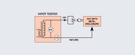 測試電壓須叁照各相關(guān)的安規(guī)標準并視工作電壓及絕緣等級而訂通常使用交流電壓若有電容器類零件橫跨于待測絕緣上,則建議使用直流電壓做測試但測試電壓須為1.414倍的交流測試電壓。